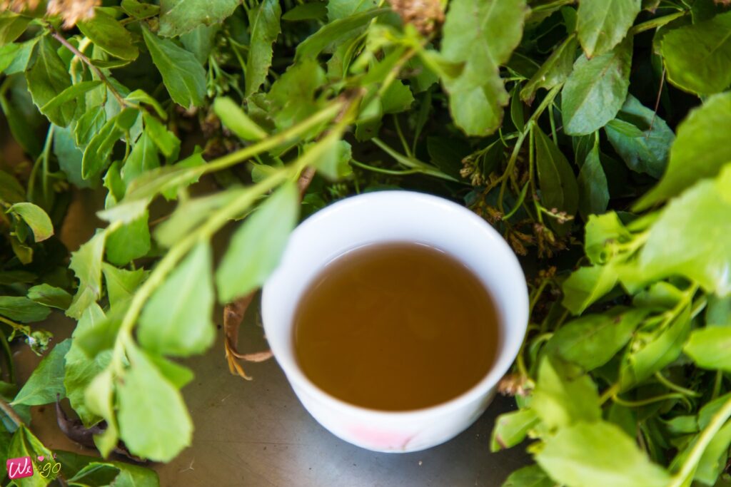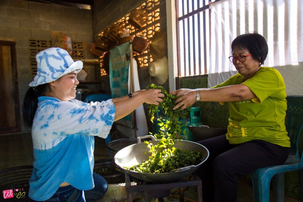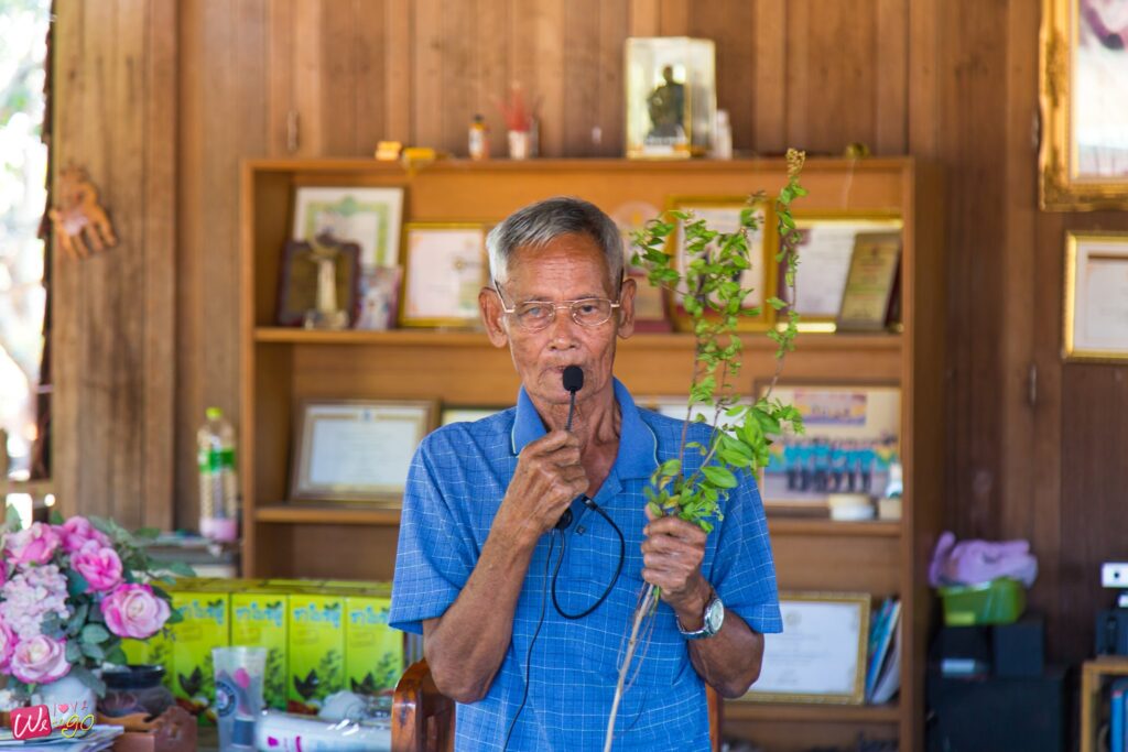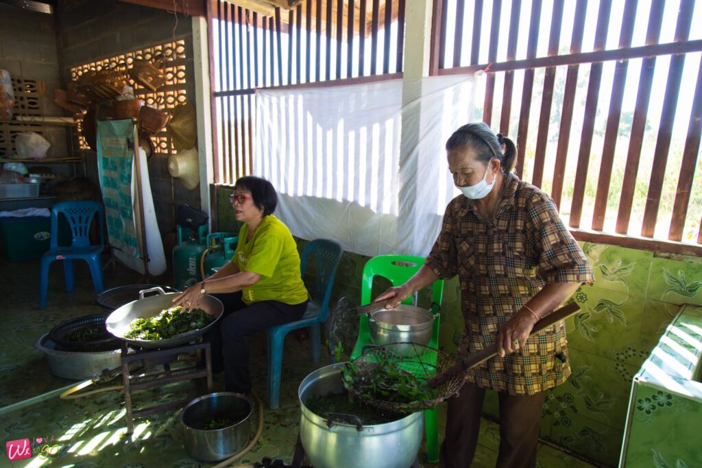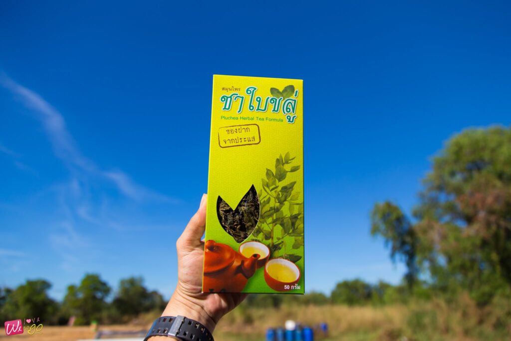 หอมยั่วๆ มาแต่ไกล ก็ไม่ใช่อะไร กลิ่นของสมุนไพรชาใบขลู่นี่เองค่ะ มาถึงวิสาหกิจชุมชนผลิตชาใบขลู่ มีคุณลุงพูดให้ความรู้ ว่าชาใบขลู่นี้มันดียังไง ฟังแล้วอยากซื้อกลับบ้านไปฝากผู้สูงวัยกันเลยทีเดียว เพราะของเขาดีจริงๆ มีสรรพคุณทางยาเพียบ ทั้งบรรเทาโรคเบาหวาน ลดไขมันในเส้นเลือด และขับปัสสาวะ ฯลฯ รับประทานง่าย มีกลิ่นหอมอ่อนๆ เหมาะกับการซื้อไปเป็นของฝาก แถมยังมีคุณป้าสาธิตวิธีการทำ ที่มีหลายขั้นตอนกว่าจะมาเป็นชาใบขลู่ให้เราได้กินกันหอมๆ แบบนี้ด้วย