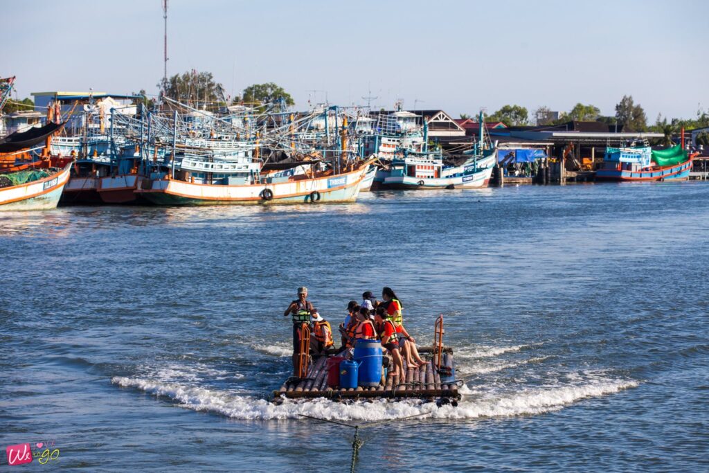 สำหรับกิจกรรมนี้จะใช้เวลาประมาณ 2 ชั่วโมง ช่วงเวลา 16.00-18.00 น. ล่องแพไปกลับ ตลอดทางชมวิถีชีวิตของชาวประแสริมน้ำ ชมเรือประมงสวยๆ หลากสีสันจอดเทียบท่า ชมทัศนียภาพต้นไม้ วิวสองข้างทาง ชมประภาคารสีขาวกลางทะเล แวะชมเหยี่ยวแดง เล่นน้ำ และไปจบที่การชมพระอาทิตย์ตกบริเวณปากแม่น้ำประแส บรรยากาศโรแมนติกสุดฟินมาก พอมาถึงฝั่งยังสามารถสั่งเครื่องดื่มเย็นชื่นใจได้ที่บ้านชานสมุทรโฮมสเตย์อีกด้วย