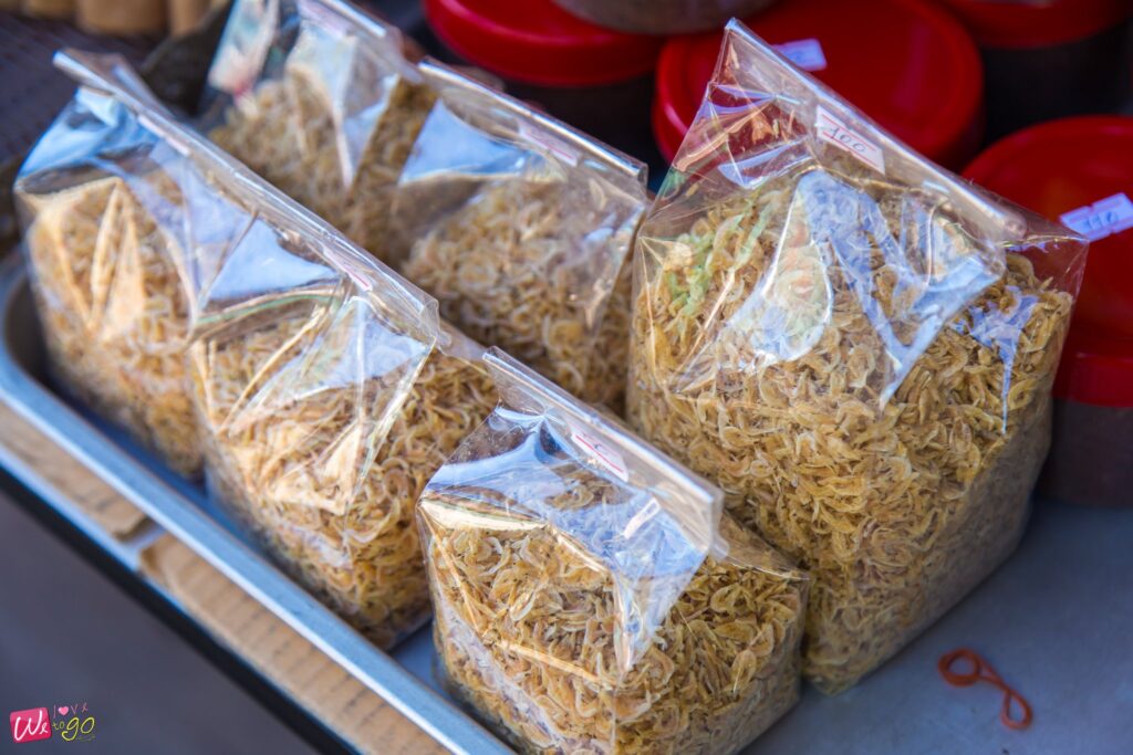ข้าวผัดประแส (ผัดด้วยกะปิเคย), ส้มตำกระชับทอด, หมึกกะตอยผัดดำ, กุ้งซี๊ดแซ่บเว่อร์ (คล้ายผัดพริกเกลือแต่ผัดได้เข้าเนื้อมากๆ) และแกงส้มผักกระชับ เข้มข้นน้ำแกงส้มและใส่ผักกระชับ ผักที่ปลูกในท้องถิ่น กรอบอร่อย คล้ายต้นอ่อนทานตะวัน ซึ่งเมนูทั้งหมดล้วนเป็นเมนูที่ได้จากวัตถุดิบในท้องถิ่นเขาเลยค่ะ