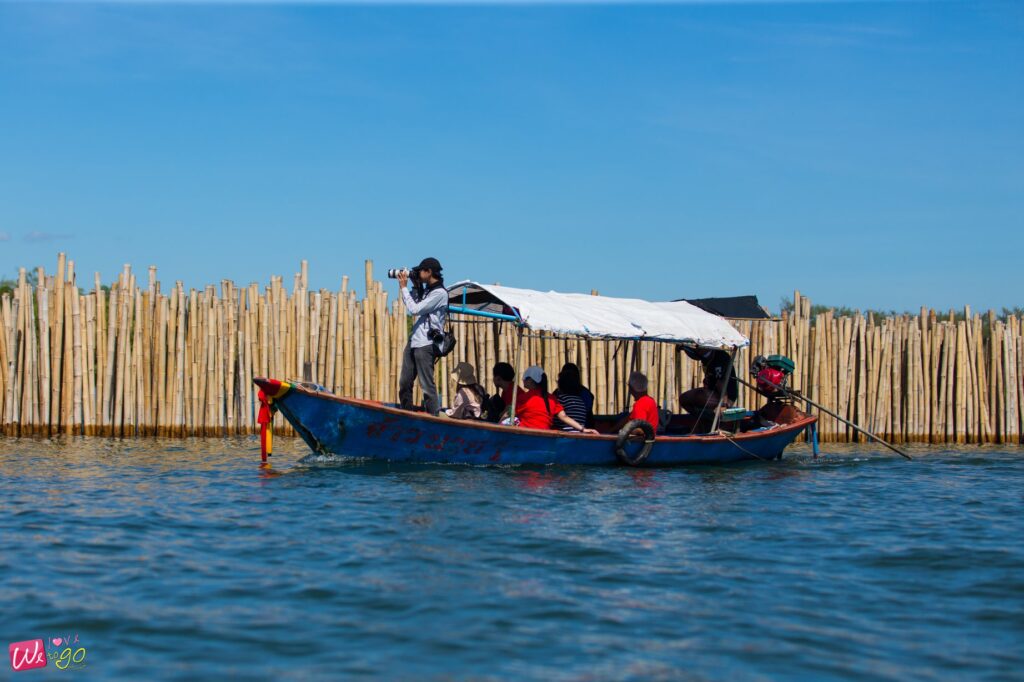 ทั้งฝั่งทุ่งโปรงทอง และฝั่งป่าชายเลน มีบริการล่องเรือชมธรรมชาติ โดยคุณลุงวัยเก๋าในชุมชน ซึ่งระยะทางโดยรวมทั้งหมดคือ 2.7 กิโลเมตร เราเลือกได้เลยว่าเราจะขึ้นเรือจากฝั่งไหน และเดินจากฝั่งไหน ครั้งนี้เราเลือกเริ่มต้นเดินจาก ฝั่งป่าชายเลนมาเรื่อยๆ มาจบที่ทุ่งโปรงทอง รวม 2.7 กิโลเมตร เดินชิลๆ ชมวิวมาเรื่อยๆ เลยค่ะ และมาขึ้นเรือที่ฝั่งทุ่งโปรงทองกลับไปยังป่าชายเลนซึ่งเราจอดรถไว้ ล่องเรือผ่านคลองแสมผู้ คลองธรรมชาติ ชมนก ชมไม้ บางทีอาจเห็นค้างคาว ชมบ้านเก่าร้อยปี เรือจะมีจอดเทียบท่า นั่งได้ประมาน 7 คน
