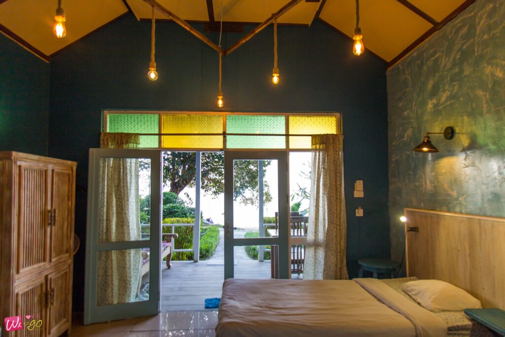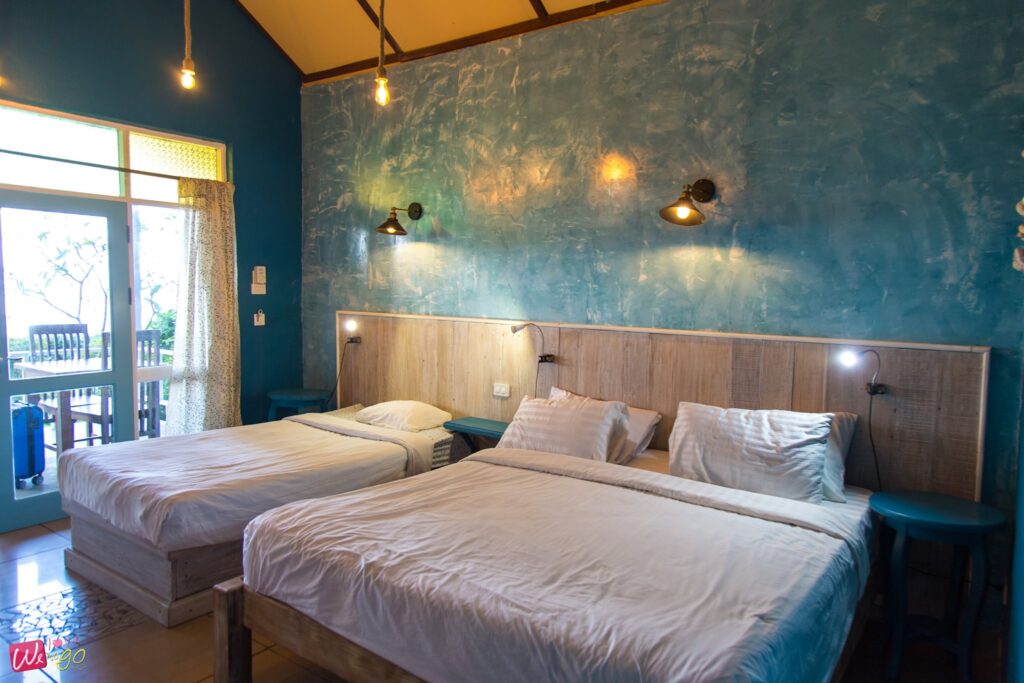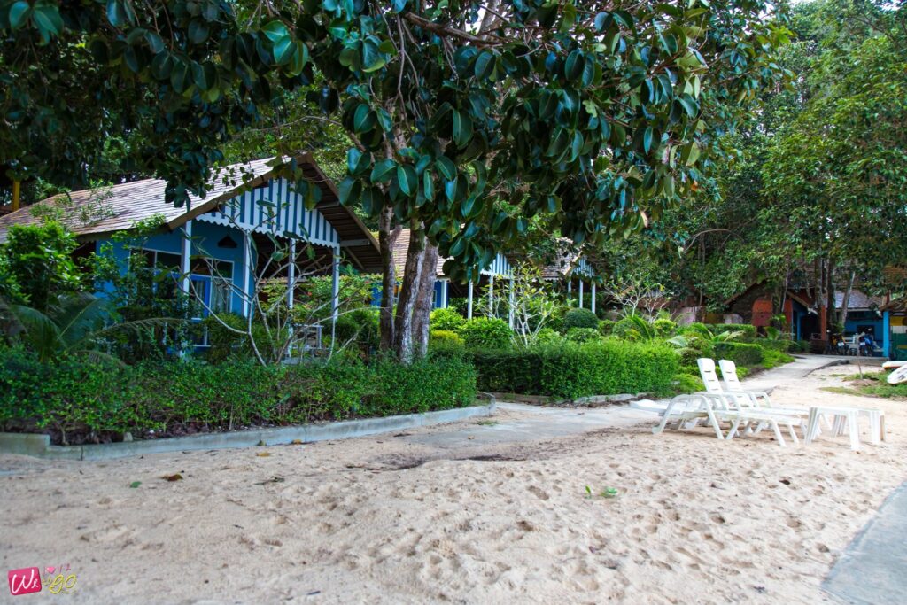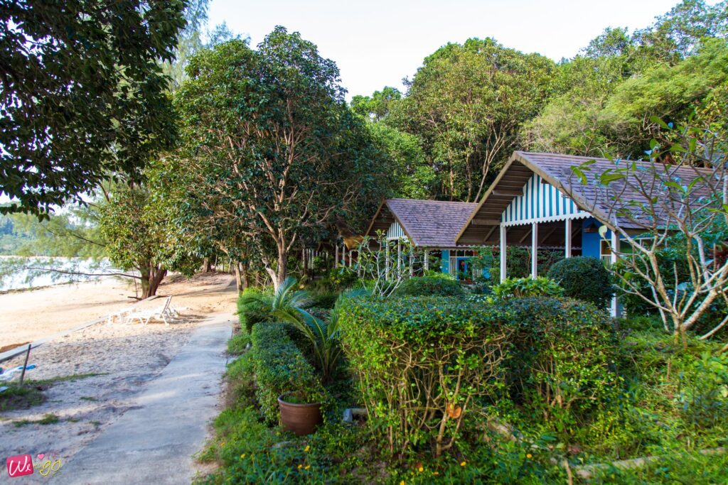 ส่วนห้องพักมีระเบียงที่มองเห็นวิวสวนได้ และด้านหน้าที่พักติดทะเลเลยค่ะ นี่แหละเป็นไฮไลท์ของที่นี่เลย เพราะอยากเล่นน้ำตอนไหนก็ไปทะเลได้ทันที เรียกได้ว่าเป็นสวรรค์ของคนชอบทะเลเลยล่ะค่ะ