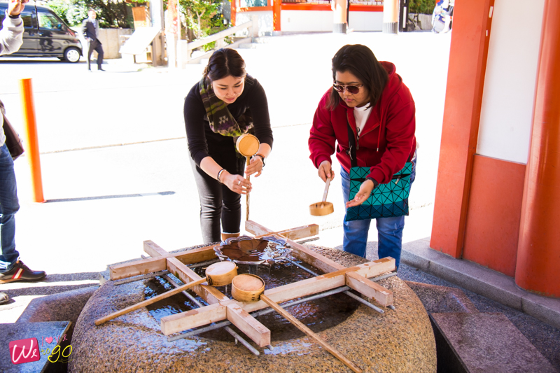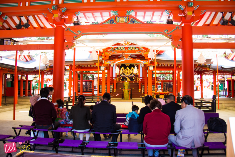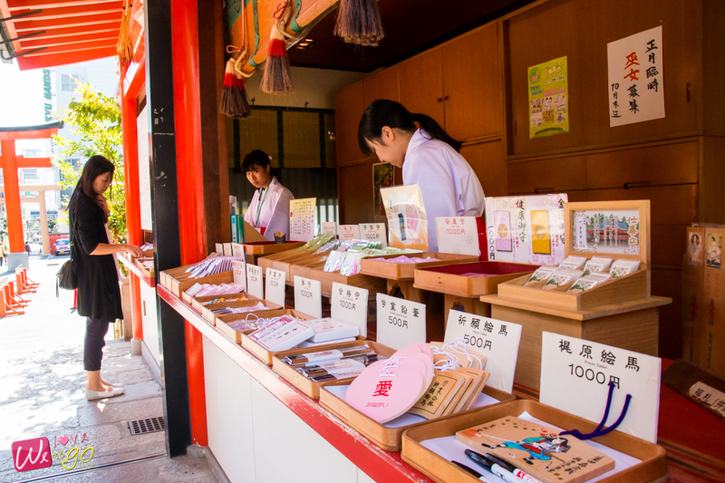 ด้านในมีตัวอาคารหลังใหญ่ที่มีองค์เทพประดิษฐานอยู่ศาลเจ้ายังมีเครื่องรางคู่ให้บริการด้วยนอกจากจะเป็นศาลเจ้าแห่งความรักแล้ว ยังมีเทพ Wakahirume-no-Mikoto ผู้เป็นน้องสาวของเทพ Amaterasu-Omikami ซึ่งเป็นเทพที่ยิ่งใหญ่ที่สุดของญี่ปุ่น เป็นเทพผู้ให้กำเนิดความอ่อนเยาว์ ความสดชื่น และชีวิต เราจึงเห็นชาวญี่ปุ่นนำเด็กทารกที่เกิดใหม่มาทำพิธีขอพรที่ศาลเจ้าแห่งนี้กันด้วยค่ะ แต่ก่อนเข้าศาลเจ้าทุกครั้งอย่าลืมล้างมือทางด้านหน้าที่มีอ่างน้ำเล็กๆ ไว้ให้ด้วยนะคะ